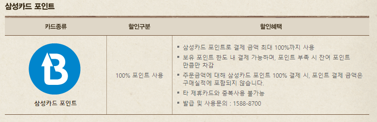 - 혜택 유형(할인형/적립형)에 관계 없이 포인트 100% 사용 가능